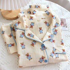 Indulge in the cozy charm of our bear print cotton pajamas, designed to bring a delightful touch to your daily life and weekends. These whimsical pajamas promise a comfortable experience like no other, making them a must-have addition to your sleepwear collection.