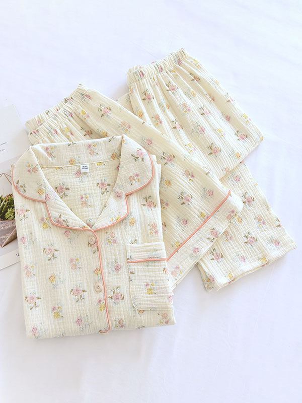 2Pcs/3Pcs Short Sleeve Floral Pajamas
