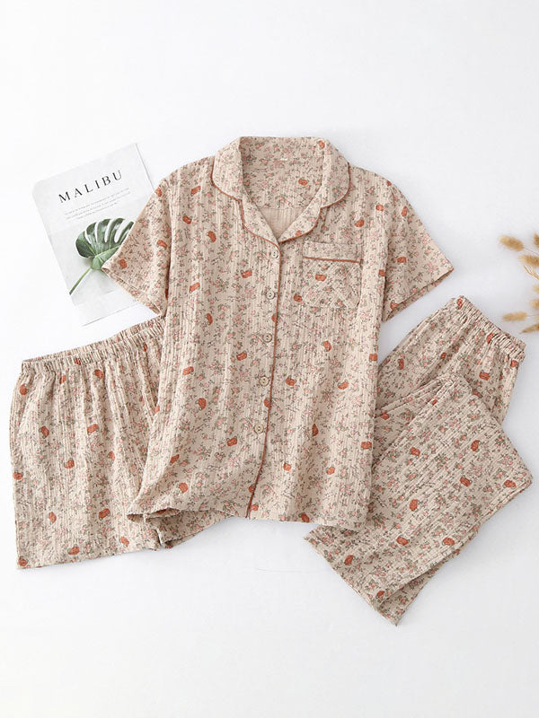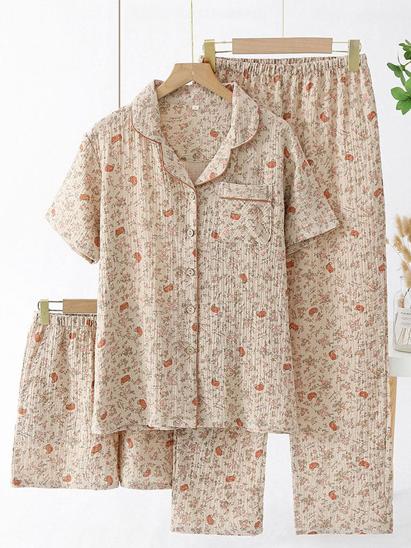 3Pcs Summer Floral Shirt Shorts Trousers Set
