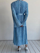 Feel fabulous from every angle! This long sleeve pleated dress in a stunning shade of blue offers a timeless look, ensuring you radiate confidence and grace wherever you go.