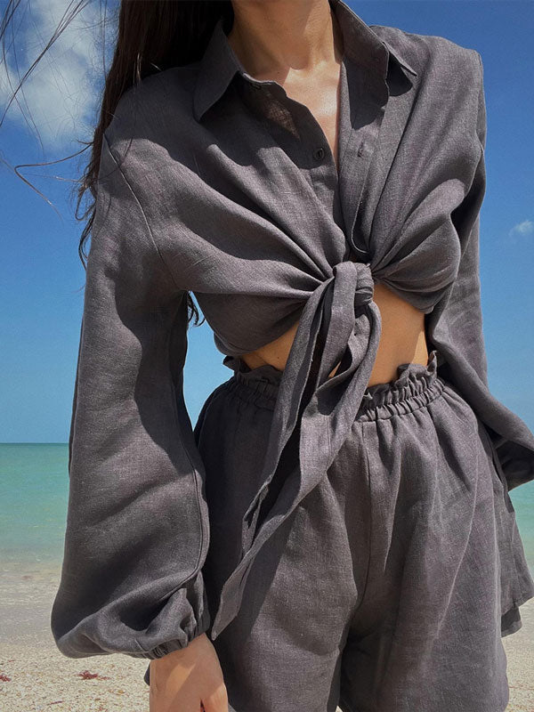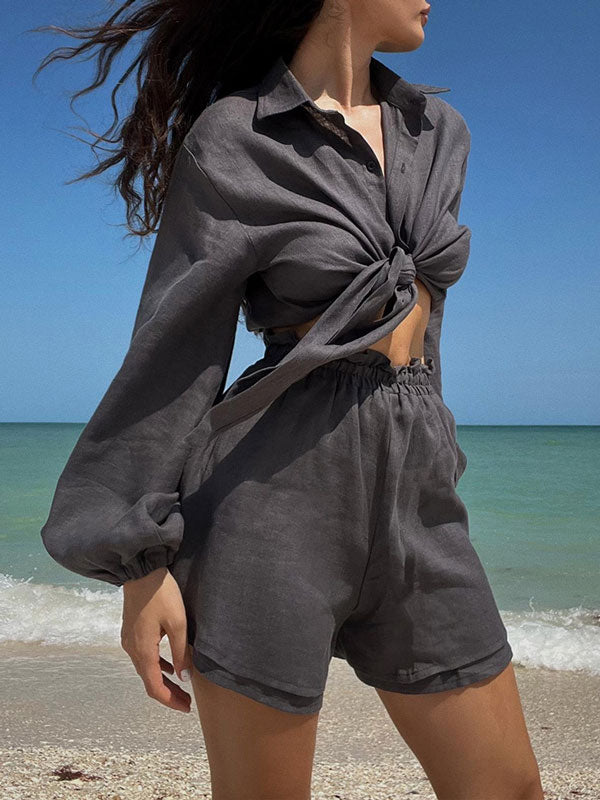 Float into your next sea vacation with this adorable set! Featuring bubbly sleeves and comfy shorts, it's perfect for sunny days and breezy nights. So chic and effortless.