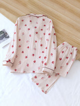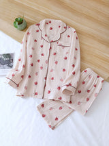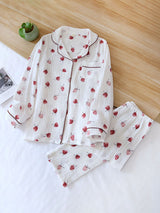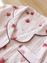 Cherry Printed Long Sleeve Cotton Pajamas