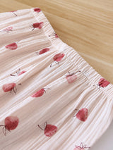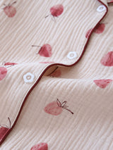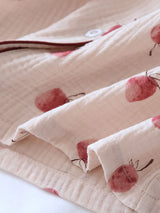 Feature a delicate cherry print with soft, muted red tones that add a playful yet gentle touch. This subtle design is perfect for a cozy, relaxed aesthetic, making it ideal for sleepwear that feels as delightful as it looks.