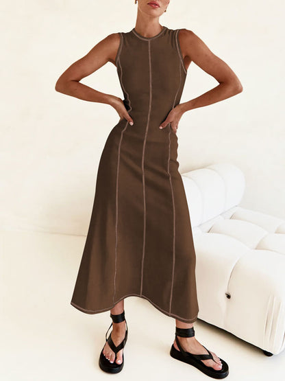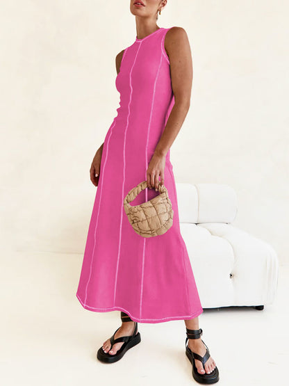 Contrast Stitch Ribbed Knit Tank Maxi Dresses