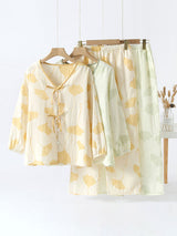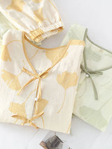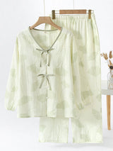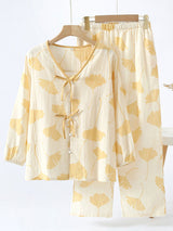 Cotton Long Sleeve Maple Leaf Print Pajamas
