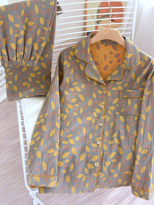 A touch of vintage flair meets cozy cotton comfort in this floral pajama set. With long sleeves and a relaxed fit, it's crafted for stylish nights and relaxed mornings alike.
