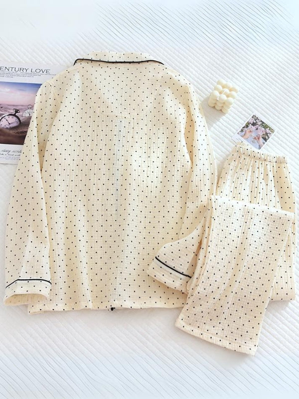 Cotton Spot Print Long Sleeve Pajama Set