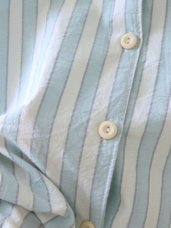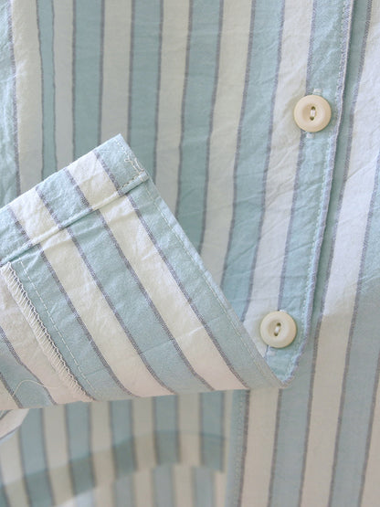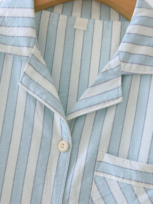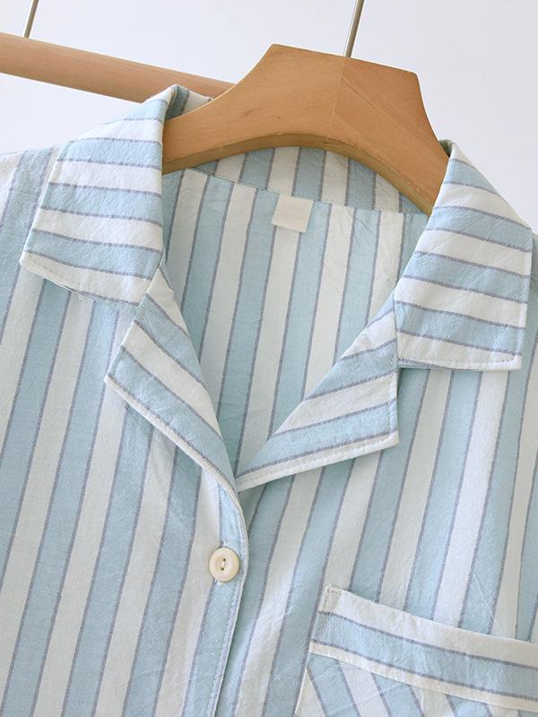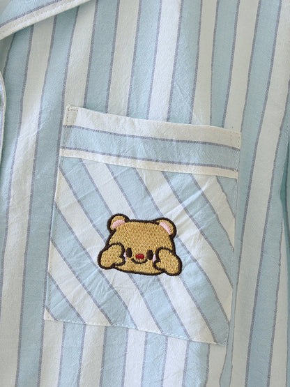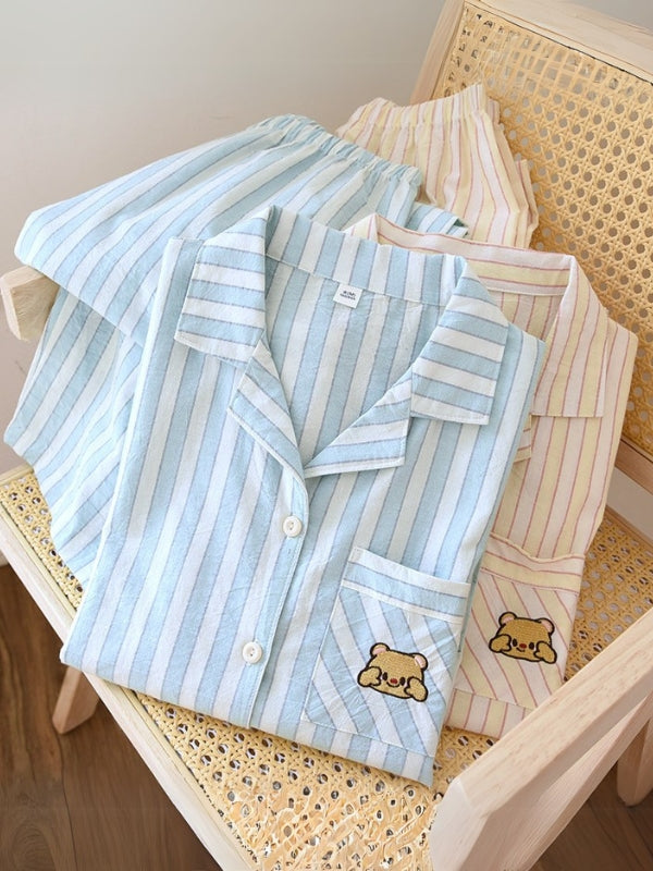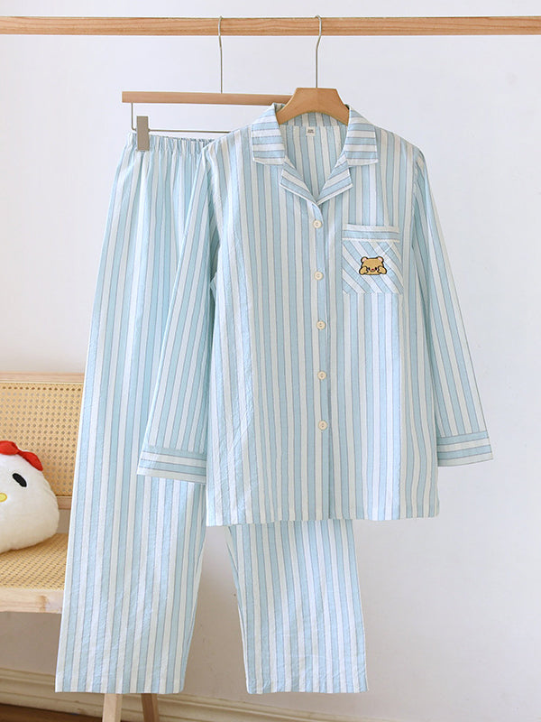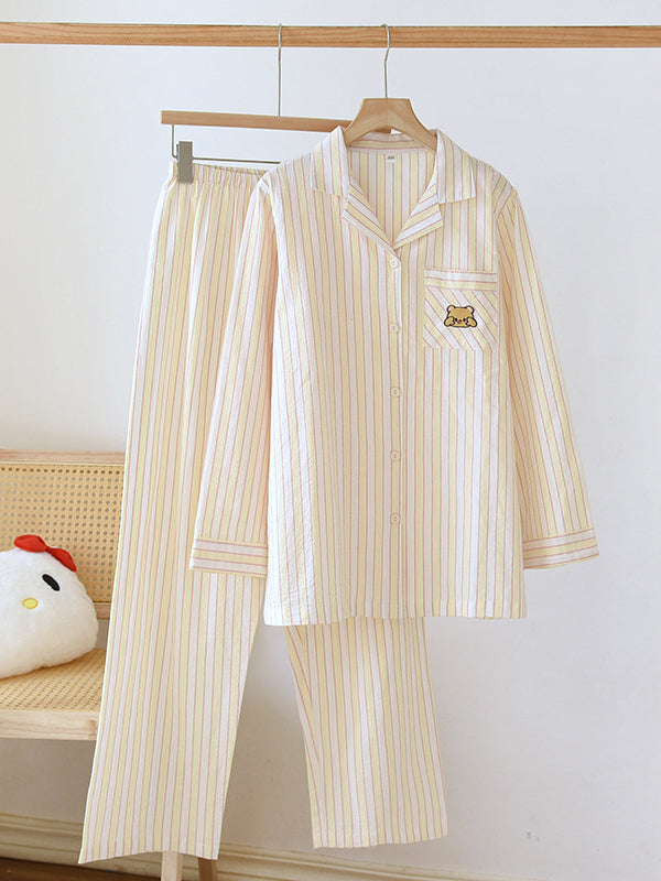 Cotton Stripe Cartoon Print Long Sleeve Pajama Set