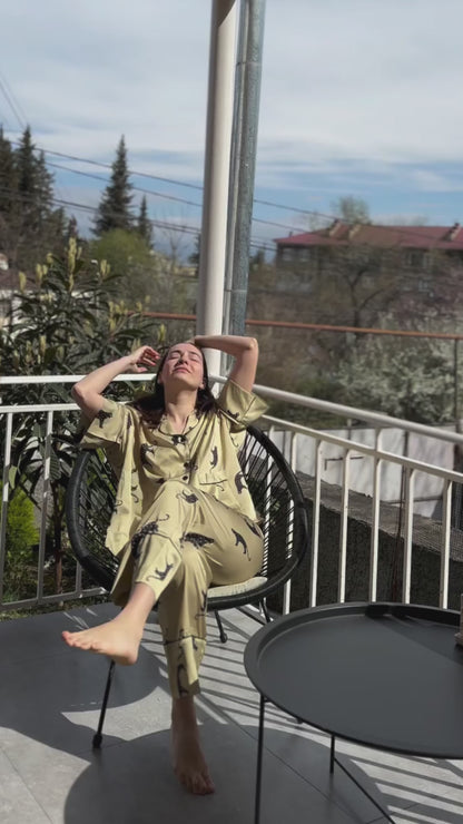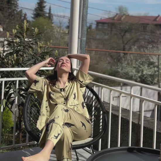 Relax in luxury with this soft, leopard-print pajama set. Dolman sleeves add a touch of sophistication to your loungewear collection.