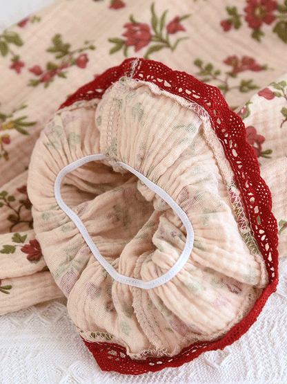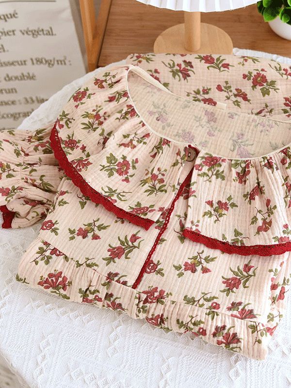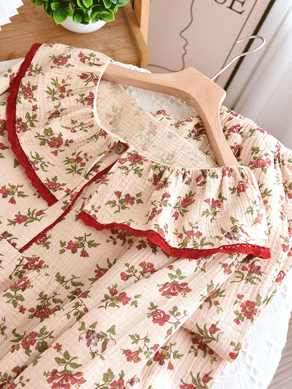 Long Sleeve Round Neck Lace Trim Pajama Set