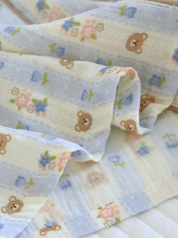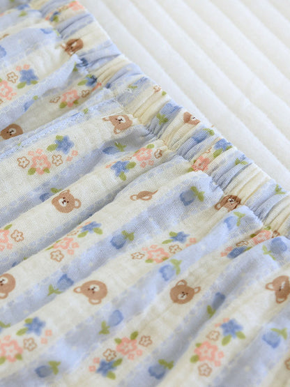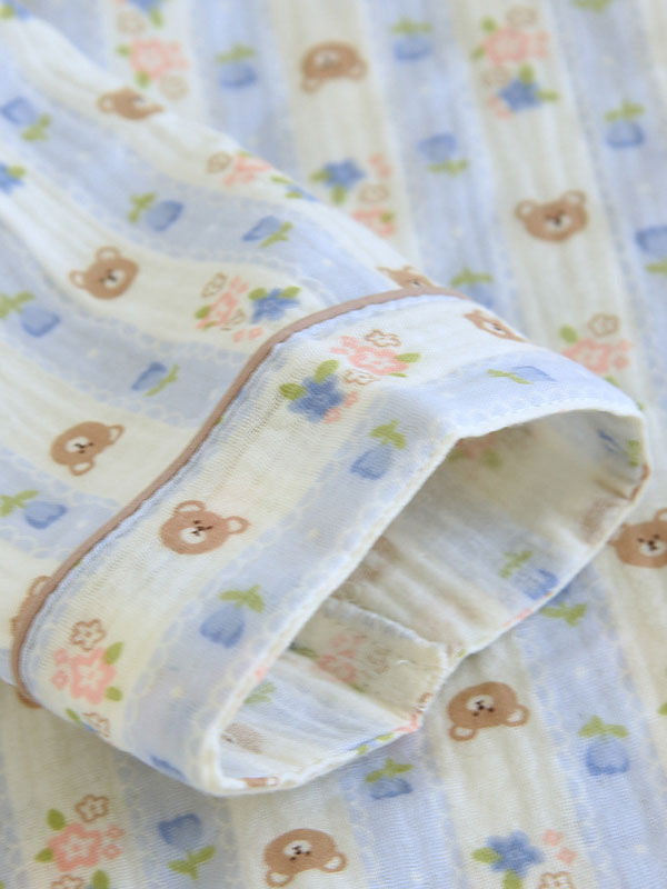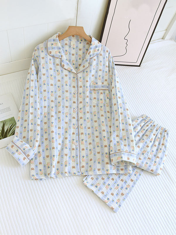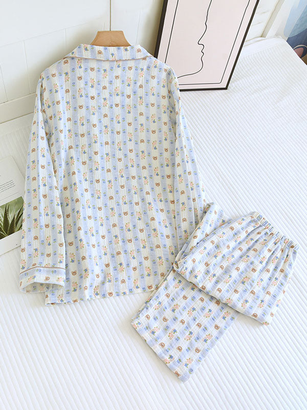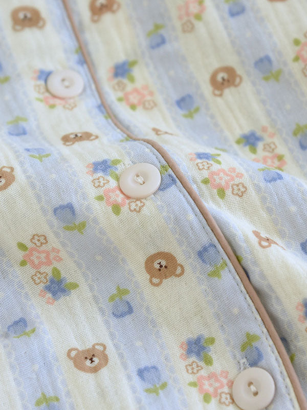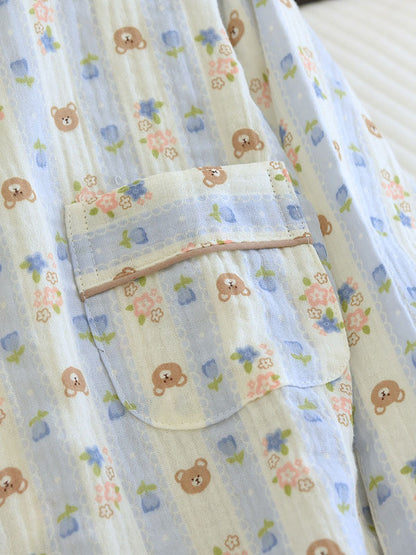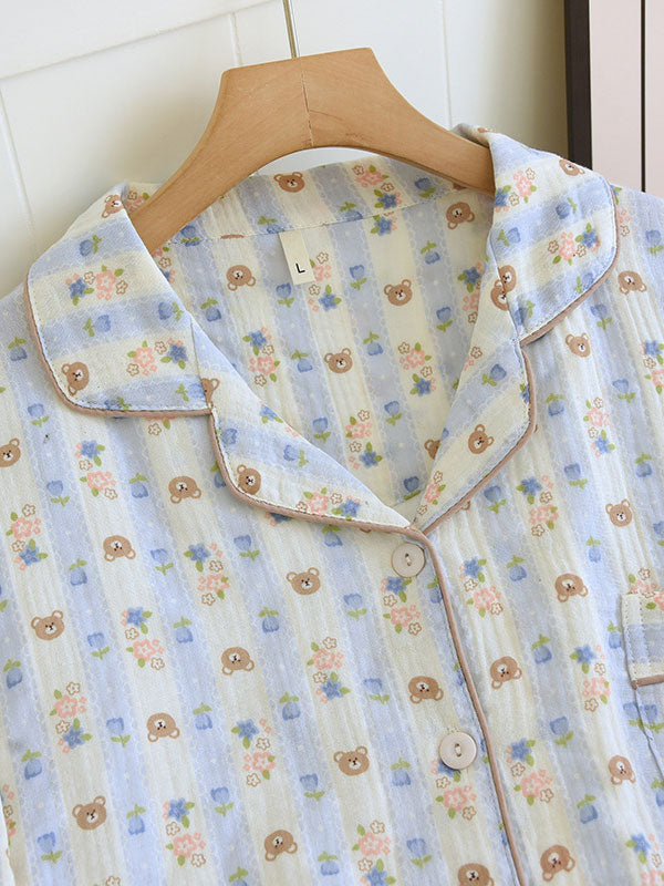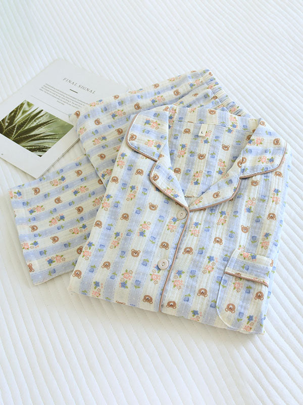 Long Sleeve Teddy Bear Printed Striped Pajamas