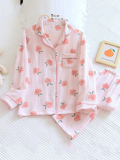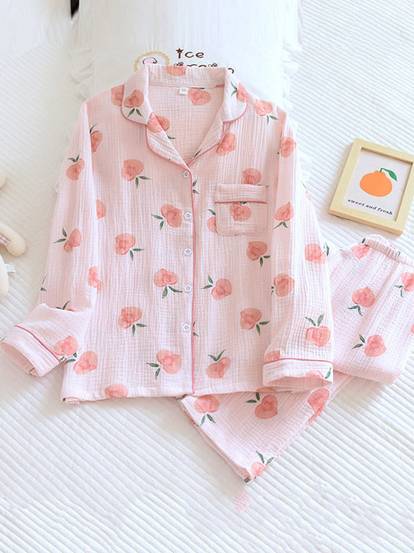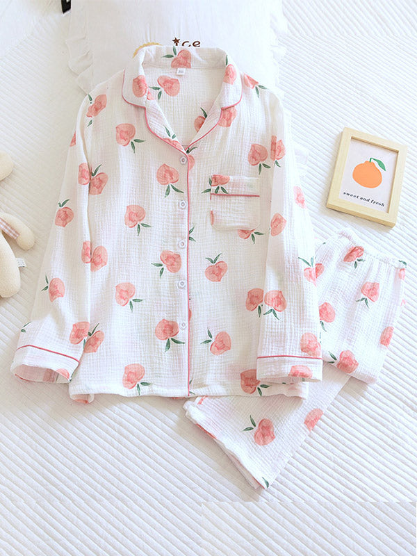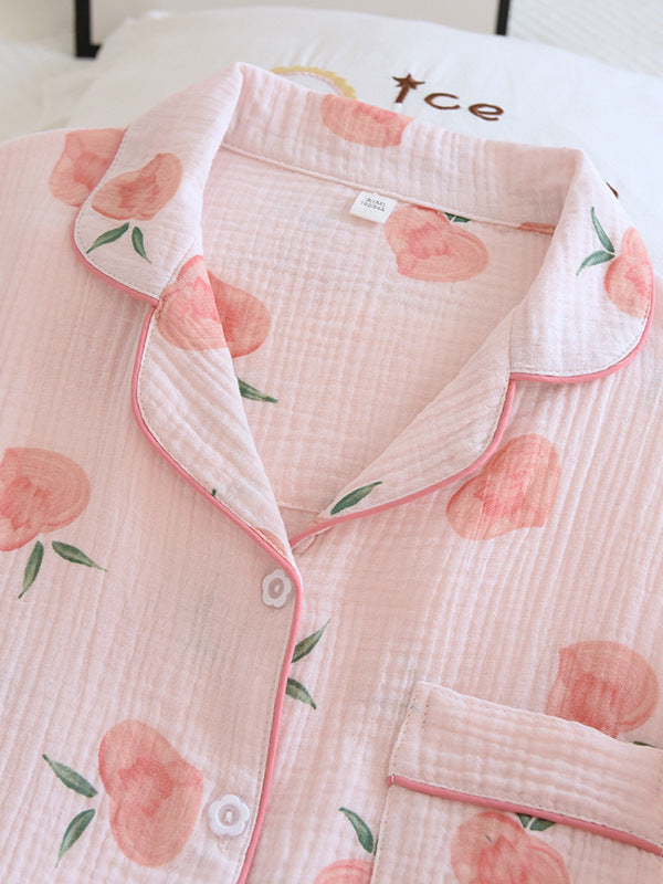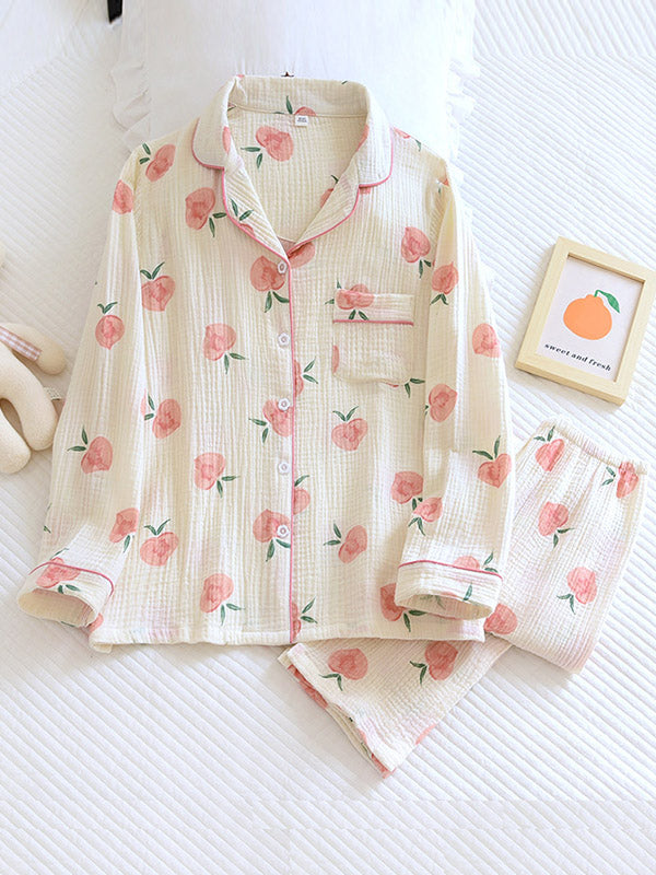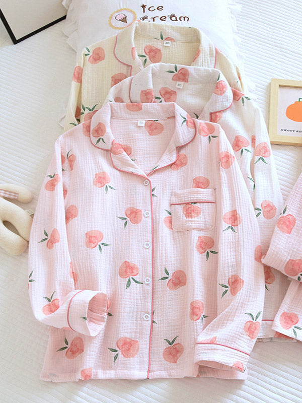 - Playful Print: Featuring an adorable peach print that adds a fun, fresh touch to your loungewear collection.