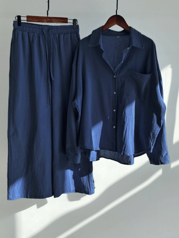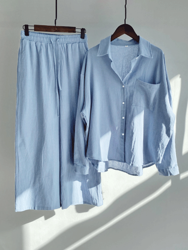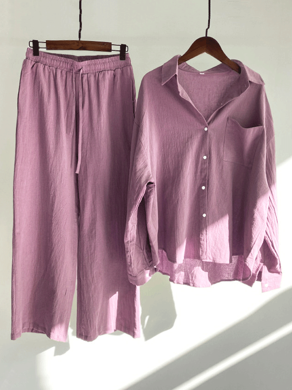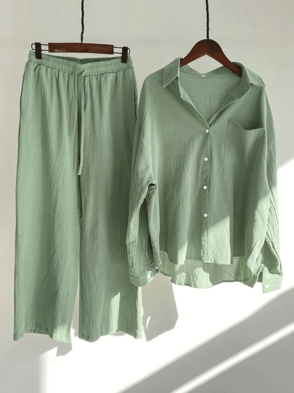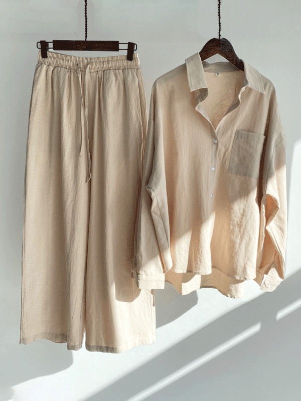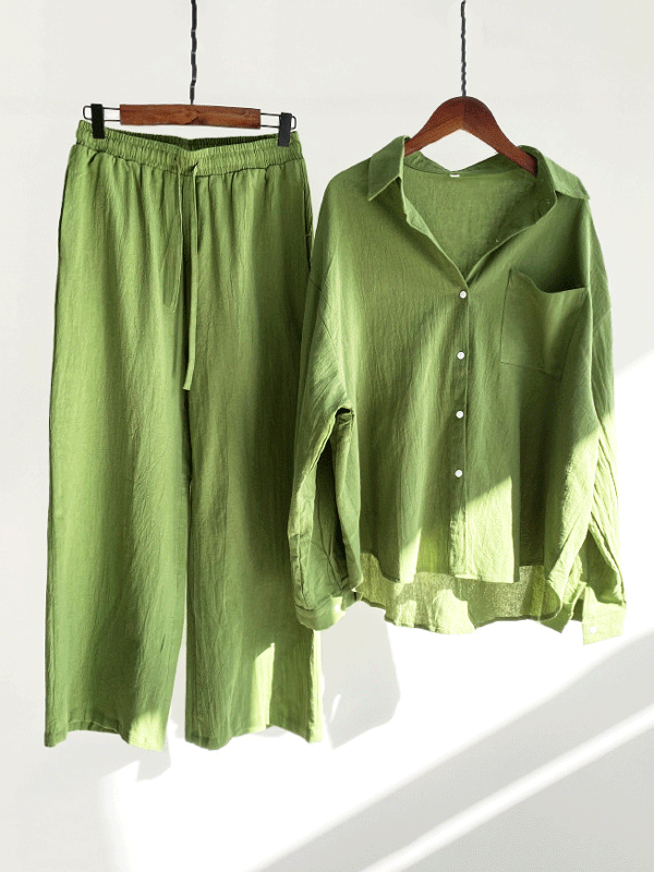 Plus Size Cotton Linen Shirt Long Pants Sets