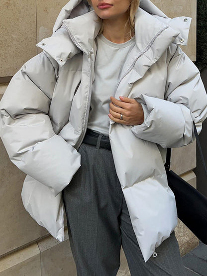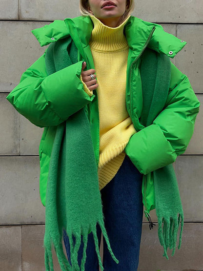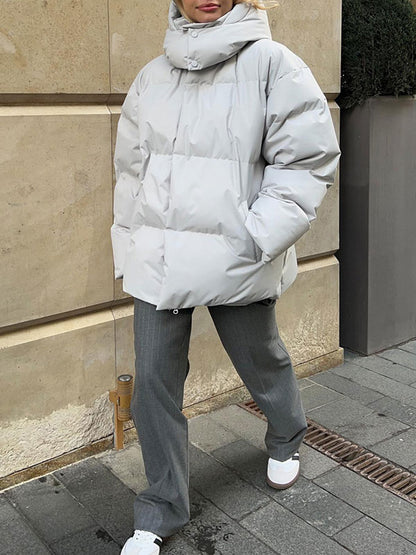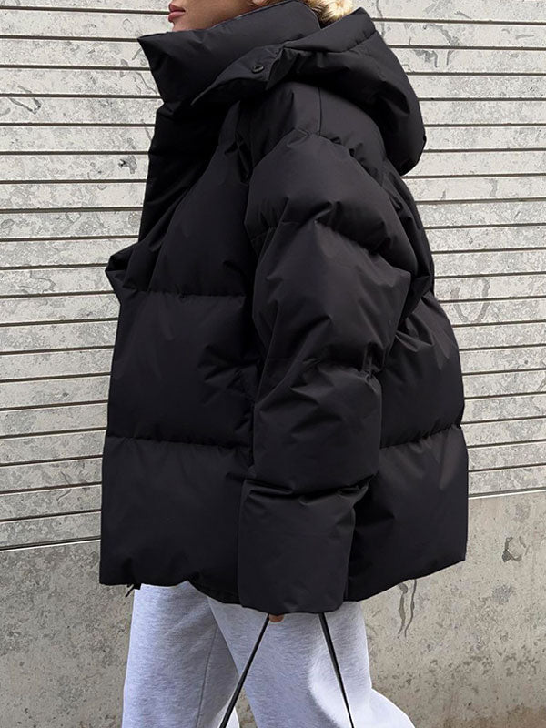 Stay snug and stylish all season long in this puffer with a sleek stand collar and a unique tie-up detail, adding a refined touch to any cold-weather outfit.