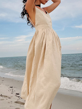Crafted with a lightweight fabric, this dress features delicate spaghetti straps and a flirty ruffle hem, perfect for sunny days and beach getaways.