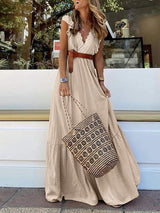 Ruffle V Neck Sleeveless Maxi Dress