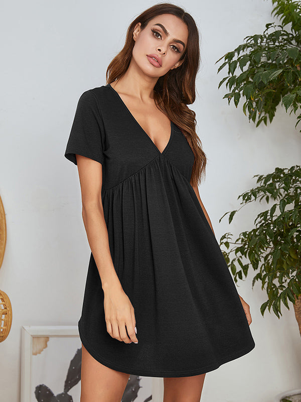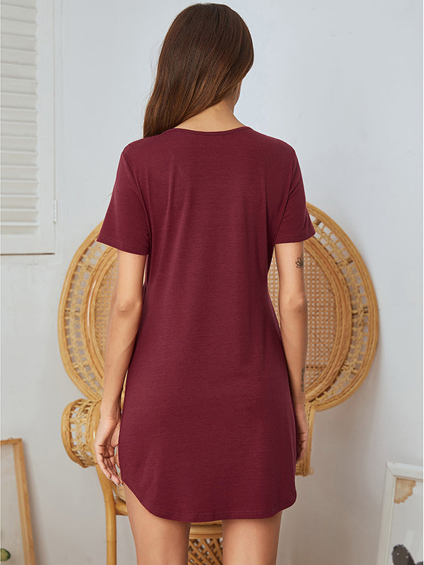 Solid V Neck Lounge Nightdress