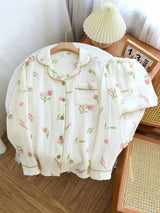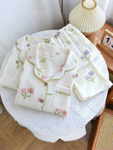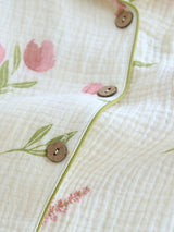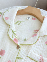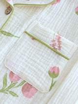 Delight in cozy nights with this long sleeve pajama set, beautifully printed with tulips. Made from soft cotton, it’s designed for comfort and style, perfect for lounging or enjoying a peaceful night’s sleep.