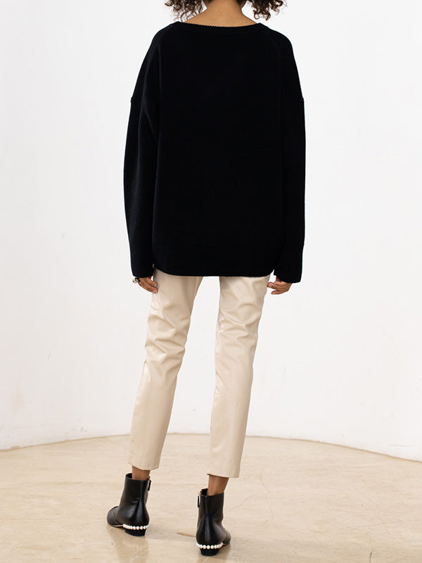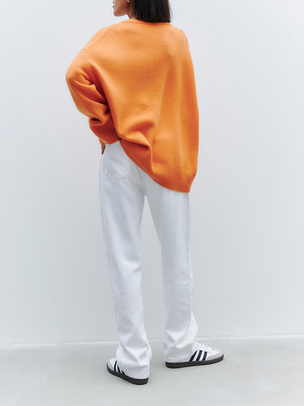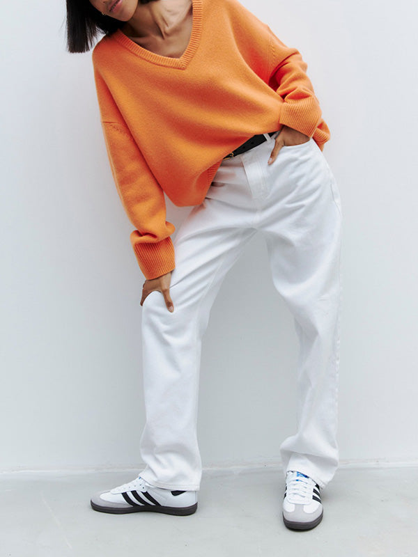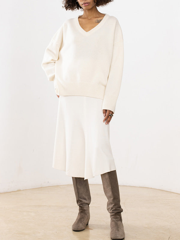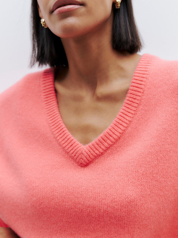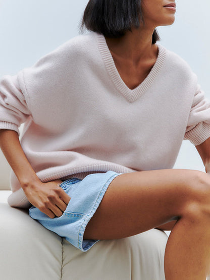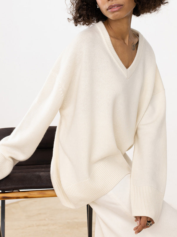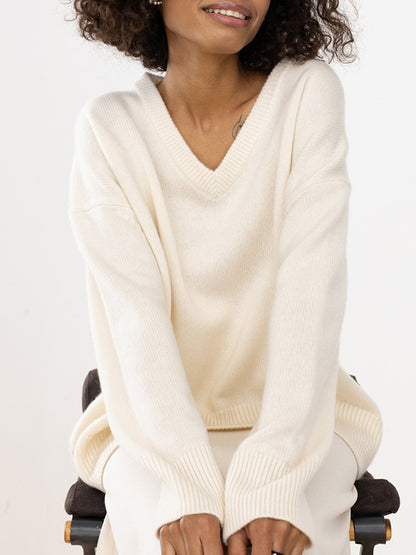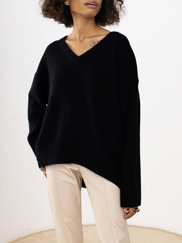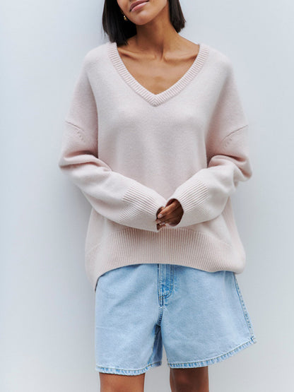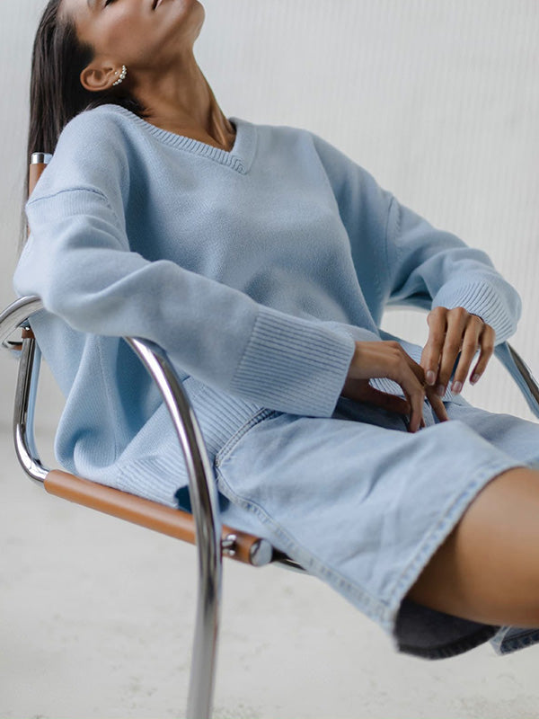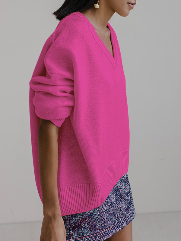 Always in style, this V-neck solid color sweater brings a touch of elegance to your wardrobe. Perfect for layering or wearing solo, it keeps you cozy and chic for any casual outing.