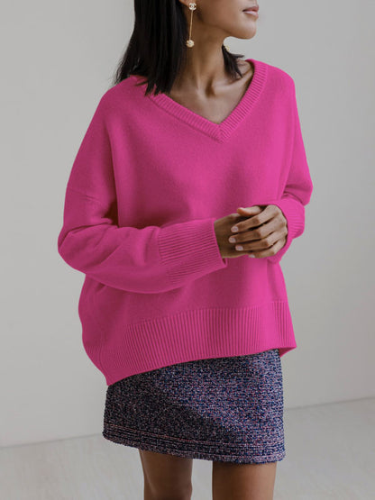 Always in style, this V-neck solid color sweater brings a touch of elegance to your wardrobe. Perfect for layering or wearing solo, it keeps you cozy and chic for any casual outing.